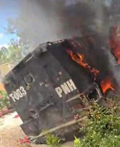 Kenscoff : des terroristes de « Viv ansanm » incendient un véhicule blindé de la PNH